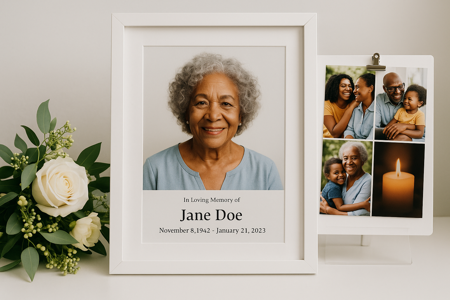 Print a QR card and place it at the entrance, program table, or reception. Friends and family can scan to open the Tribute page and post messages, photos, or stories no app required.